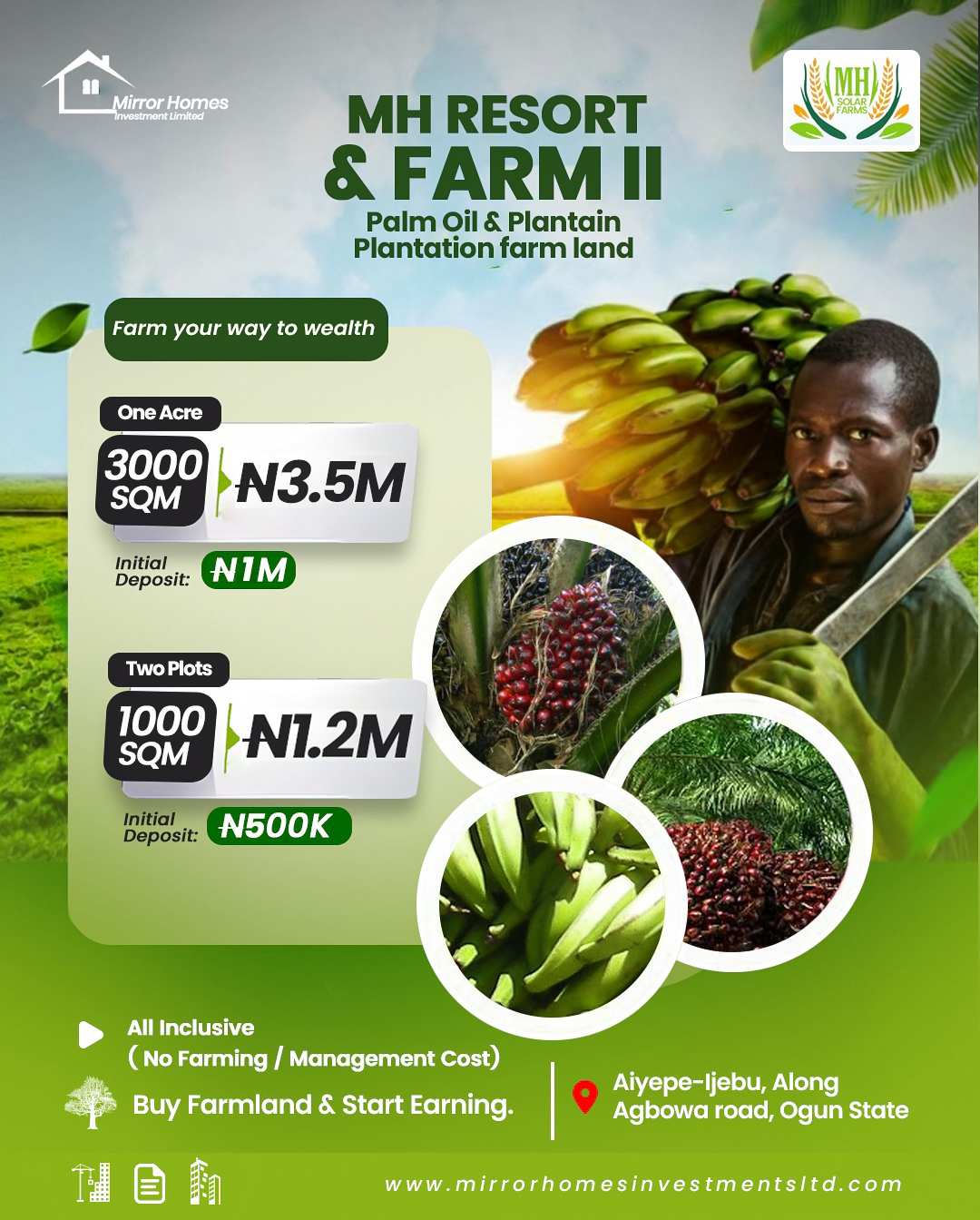 With rising food demand, population growth, and expanding agribusiness opportunities in Nigeria, farmland is no longer just for farming—it is now a strategic investment vehicle. This is where MH Resort and Farms II stands out as a premium farm land investment opportunity designed to deliver both financial returns and long-term value.